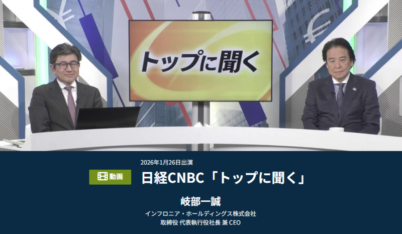 1/29出演 日経CNBC「トップに聞く」動画公開のお知らせ
