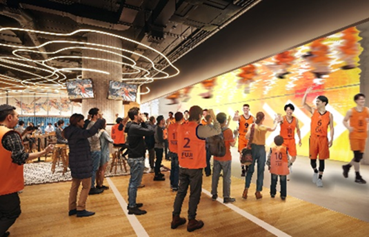 ・大型ビジョンの活用やモバイルオーダー等に対応したアリーナアプリの実装、先進的な通信技術などによる観戦体験の最大化