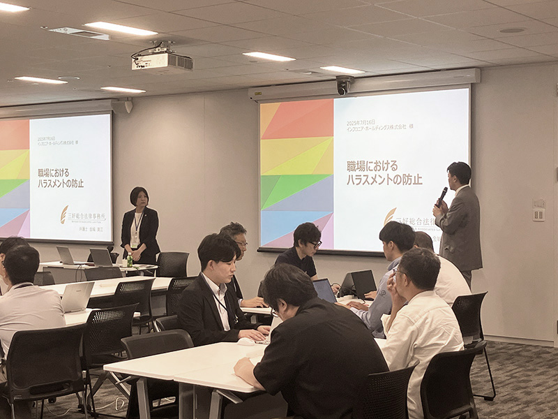 インフロニアでは、各事業会社のコンプライアンス部門と連携し、グループ全役職員を対象としたコンプライアンス研修を実施しています。本研修では、全役職員に配布した「コンプライアンス・マニュアル」を利用し、 「腐敗防止」や「ハラスメント」など、コンプライアンスに関わる事項全般を本マニュアルに沿って教育しています。本研修を通して全役職員へのコンプライアンスに対する意識向上とコンプライアンス遵守を徹底し、当社グループ全体でのコンプライアンス推進を図っています。