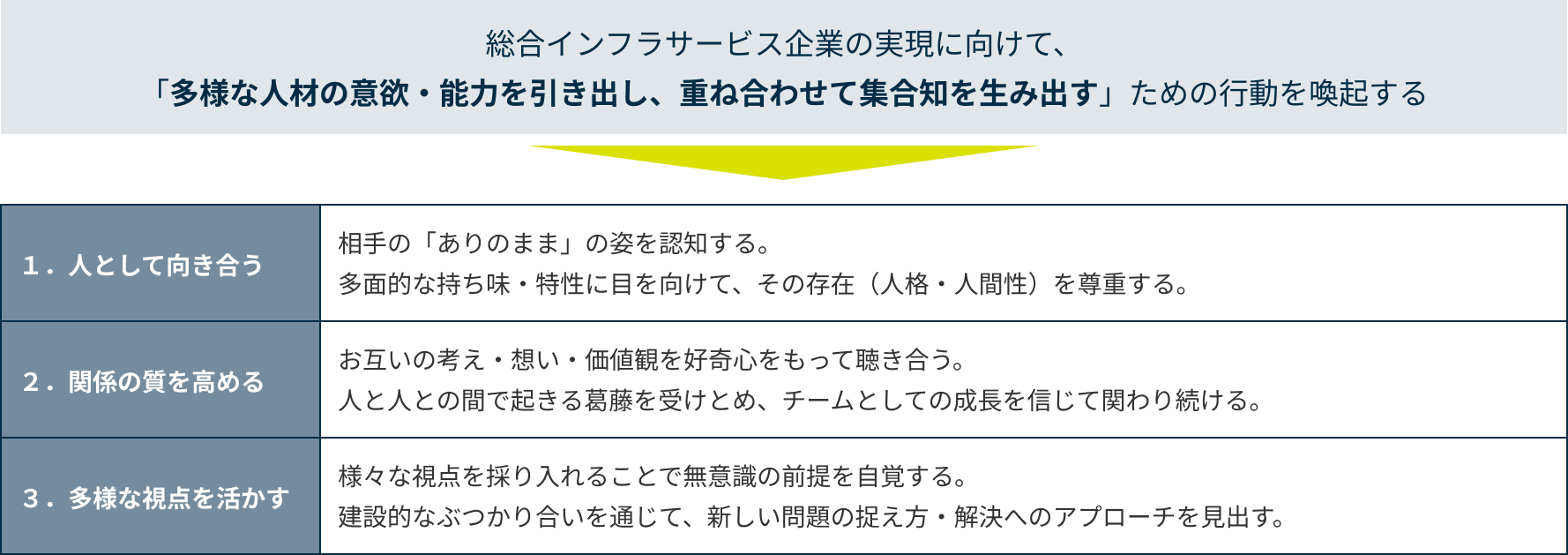 - 相手への配慮・尊重により個々人の能力が最大限に発揮される関係性を育む